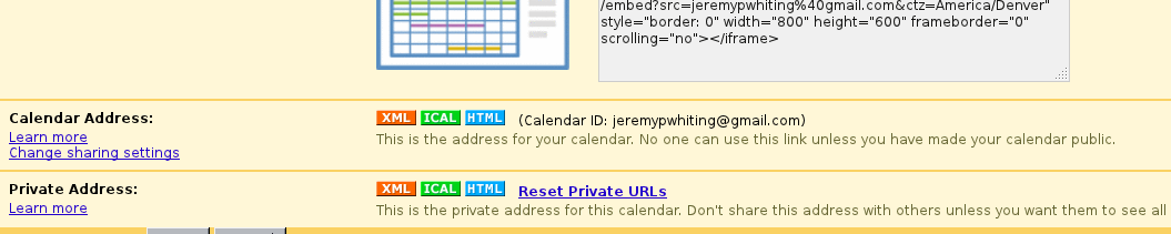 Then you'll need the google calendar url to plug your calendar's address into which can be found in the help section, here for convenience: